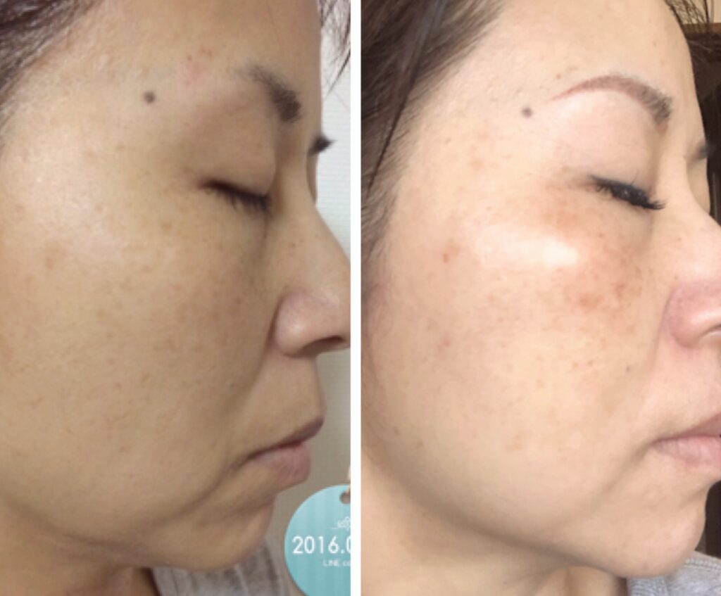 何もお手入れしていなかった44歳のころより52歳の肌が整っているのがわかりますか?トーンアップ、キメが整いました。